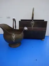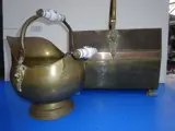 Versierd met " leeuwenkop " , Koperen draagbeugel en messing pootjes in vorm van Leeuwenpoten.