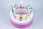 Leuke gelimiteerde speeldoos van Chanel. Wanneer de deksel opgetild wordt begint de muziek te spelen en de dames en flesjes rond te draaien. De speeldoos reageert op licht. Werkt op een accu. Leuk en vooral heerlijk ruikend collectors item.
