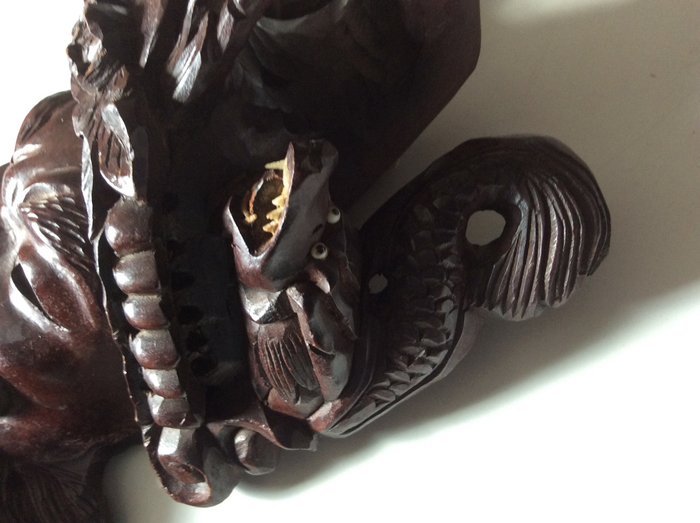 Rozenhout, fijn porselein, been, metaal om op te hangen.