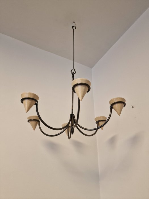 Cor Unum - waxine licht 6 armigekroonluchter - ijzer, keramiek