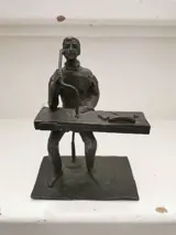 Prachtig beeldje van een veilingmeester gemaakt door Corry Ammerlaan voor de bloemen veiling in rijnsburg in 1997 in speciale opdracht, zeer fraai gedetailleerd.