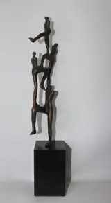 Corry Ammerlaan van Niekerk (1947) Sculptuur gemaakt van gegoten brons. Het stelt 4 menselijke figuren zonder armen voor die wonderlijk wel toch hogerop komen. Beeld is in nieuwstaat en zit nog in de originele cadeauverpakking.