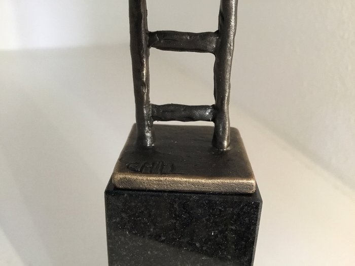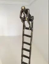 Mooi symbolisch sculptuur van een mens in gedachten bovenop een trap van de bekende kunstenares Corry Ammerlaan