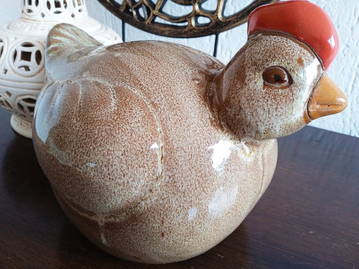 Country decoration: original Size Garden / Kitchen statue Rooster in earth tones - Aardewerk