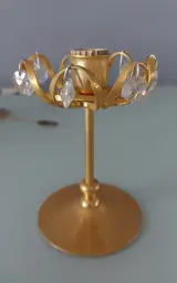 3 prachtige kandelaars 24 karaat gold-plated met Austrian crystal zien er nog heel goed uit