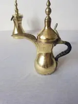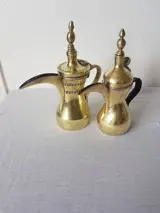 Zeer mooie Islamitische Ottomaanse massief messing Dallah koffiepotten, fijn afgewerkt, mooie 19e eeuwse Arabische kalligrafie. Hoogte: 24cm Breedte: 22cm, en de kleine is 23cm hoog, breedte 20cm Geweldig voor decoratie of verzameling, ze kunnen ook gebruikt worden.