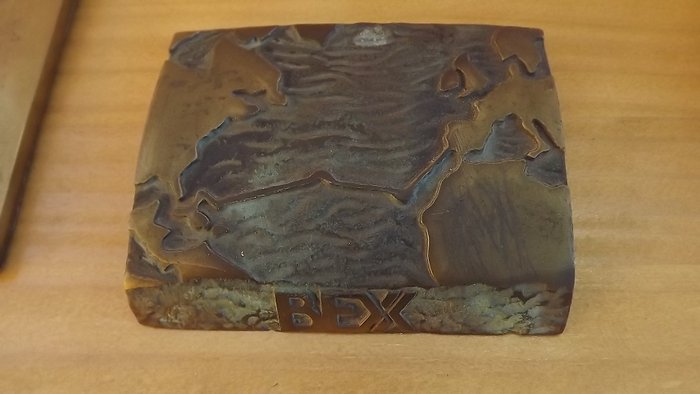 4 BEX presse-papiers met wereldkaart, brons.