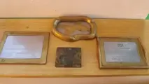2 Bronzen en aluminium kaarthouder 17,5 x 13 x 0,5 cm met INI opschrift, merk en Da. Marshall.