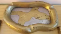 3 Golfvormige asbak van brons en aluminium, brutalistische stijl zonder vlekken of stof.
