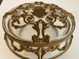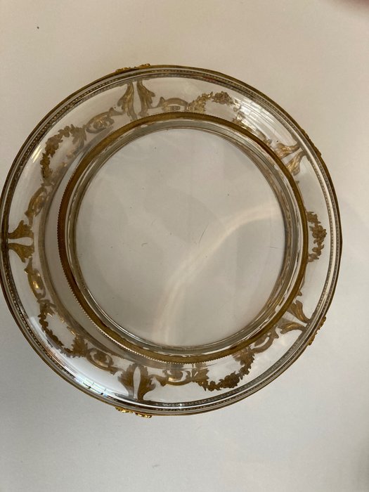 Decoratief glas met gouden metalen decoratie met de hand gemaakt, denk ik heel oud. Ik denk uit Frankrijk.