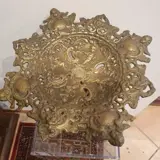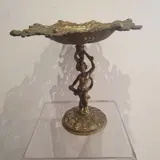 Oude decoratieve standaard in brons, ronde structuur met neoklassieke figuren in reliëf als een standbeeld, die een klein gaatje heeft (zie foto), volledig met de hand bewerkt en afgewerkt. Uit het einde van de 19e eeuw. In goede algemene staat.