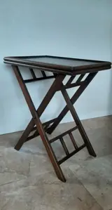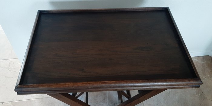 Prachtige zware eiken bijzettafel (buttertray)het dienblad kan er niet af en is niet inklapbaar.