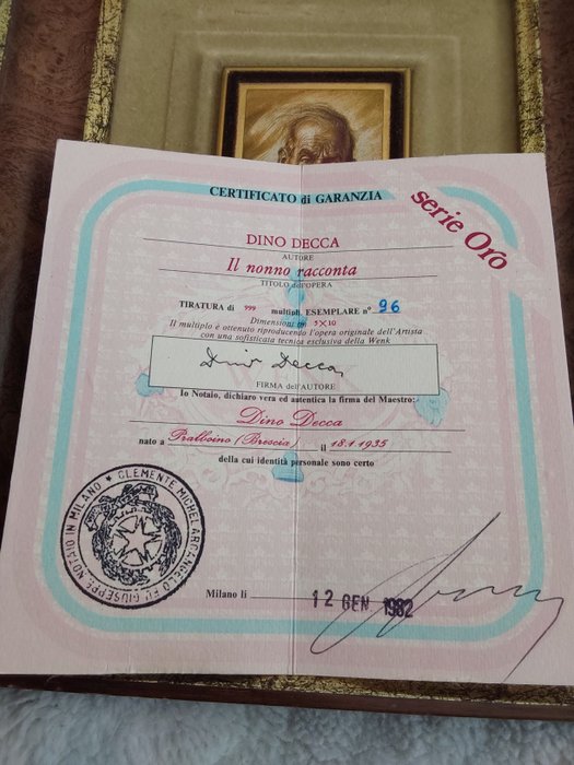 Prachtig schilderij dat Dino decca voorstelt op een gelamineerde plaat van 2,3 g goud