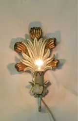 De wandlamp is geëlektrificeerd en functioneel, de lamp is niet inbegrepen.