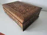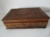 Documentenkistmet prachtig houtsnijwerk met in de midden een pauw
