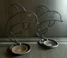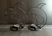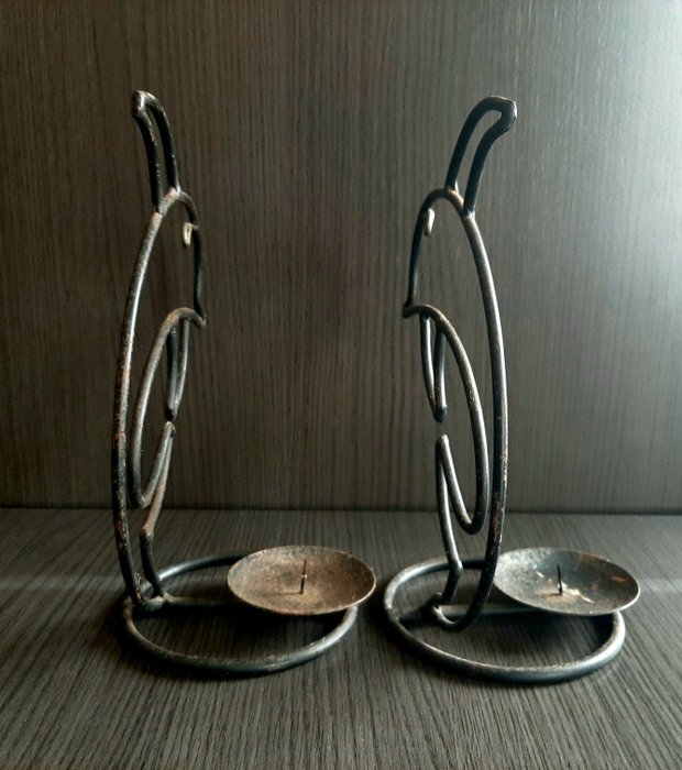 Prachtig paar kandelaars of kandelaars met een mooi silhouet van 2 spelende dolfijnen die acrobatiek doen.
