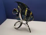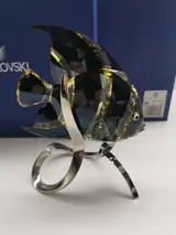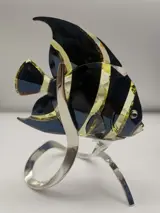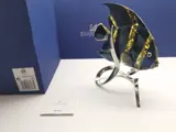 Angelfish in Swarovski-kristallen schittert in Jonquil-kristal met Moroda-effect (zwart). Het zilverkleurige metalen display heeft een elegant koraalmotief dat de natuurlijke habitat van de soort weerspiegelt.