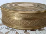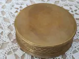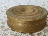 Prachtige doos, rond van vorm, met deksel, gemaakt van verguld brons en gebeiteld met decoraties typisch voor de Franse Empire periode.