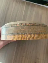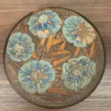 Mooie houten kist is gepyrografeerd met een bloemenpatroon
