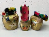 Deze handgemaakte bellen zijn van koper en hebben een mooi patina.