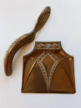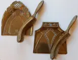 De conditie is goed, helemaal gezien de leeftijd van de objecten. Er zit een mooie goud-messing glans op, maar uiteraard zijn er sporen van ouderdom zichtbaar, zoals een paar lichte butsjes. De beide stoffers hebben een mooie boog. De haren in de stoffers hebben de tijd goed doorstaan.