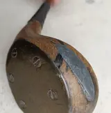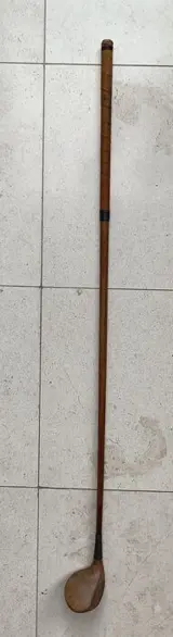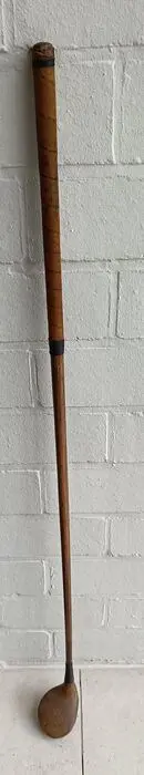 Houten golfstick, met lederen handvat. De driver is compleet en in zeer goede staat. Onderaan de stick koper. Gemerkt:E J Viney Newport (UK).