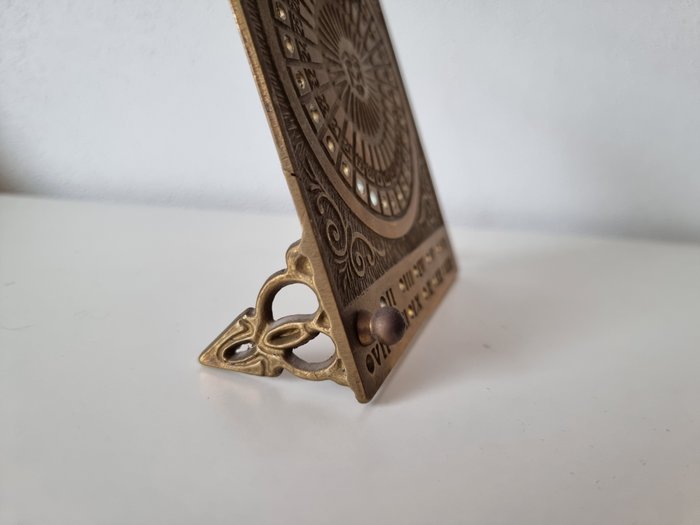 3 mooie koperen rijkelijk gedecoreerde eeuwigdurende kalenders met aanduiding van dag en maand.
