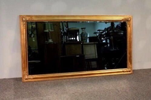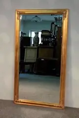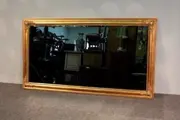 Een grote spiegel in een prachtige bewerkte houten lijst van uitstekende kwaliteit.
