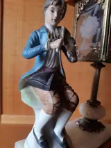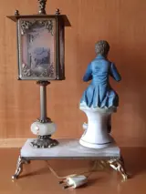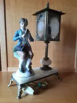 Fantastische en zeldzame keramische tafellamp, met een man die viool speelt en een straatlantaarn.