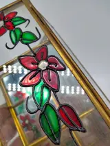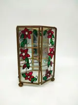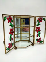Schitterende vitrine in met de hand bewerkt en beschilderd glas.