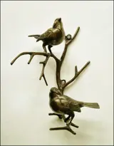 Figuur/beeld, 2 mussen op een tak - Legering