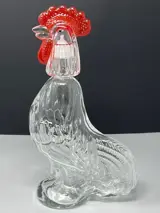 Prachtige glazen fles in de vorm van een haan. Leuk object uit de jaren 80 voor likeur of andere sterke drank.