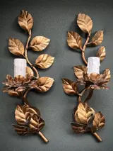 Zeer decoratieve Florentijnse wandlampen met vergulde rozen en bladeren van smeedijzer