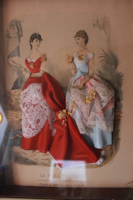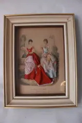 Prachtig mooie Franse "Shadowbox" in goede conditie, papier heeft wat licht bruine vlekjes, zie foto's, en in de rechter benedenhoek een scheurtje, rest is allemaal in zeer mooie conditie. Het is gemaakt uit de jaren 50 of 60 van de 20e eeuw in Frankrijk. Het is 43 cm hoog en 33 cm breed. Het zit in een houten lijst. Geheel wordt beschermd door een glazen ruit. Wordt aangetekend verzonden.