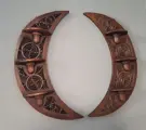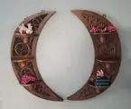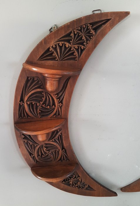 Dit paar handgesneden consoles zijn rond 1920 in Friesland, Nederland gemaakt. Ze komen uit een grote boerderij in Zuid Holland. De Ameliahoeve. Ze zijn van de ouders van een kennis geweest. En rond 1920 in opdracht in Friesland gemaakt.