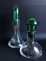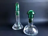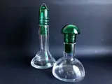 2 Futuristische flessen met groenkleurige glazen stop, Italiaanse productie, waarschijnlijk Venetië. Ideaal voor op tafel of als decoratief object.
