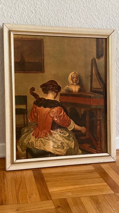 Galerie Assindia Essen - Afbeelding, Muurschildering "Het Concert", kopie naar Gerard ter Borch (1) - Impressionisme - Hout