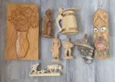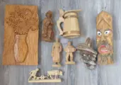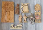 Oude houten figuren houten sculpturen - HOUTEN FIGUREN houten afbeelding houten kruik - handgemaakt