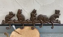Leuke kapstok of keukenhaak rekje met poezen, waarbij de staart de haak vormt.