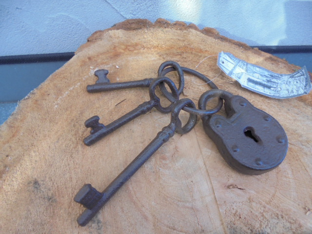 GIETIJZEREN SLEUTELBOS MET SLOT NIEUW