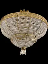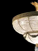 Spectaculaire lamp in antieke Victoriaanse stijl, gesneden in massief brons, met zijn gegraveerde randen. In de koepel bevinden zich een groot aantal Swaroski-kristallen, vastgehouden door meerdere bronzen rijen die zich sluiten in een bol en eindigen met kristallen prisma's en het resultaat is indrukwekkend.