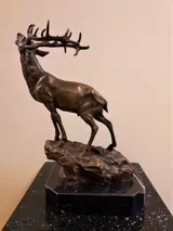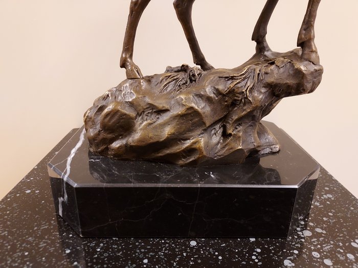 Groot edelhert op rots - Beeld - Brons, Marmer