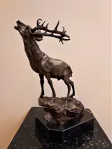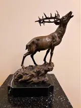 Prachtig groot sculptuur van een bronzen edelhert op een rots. Zeer gedetailleerd afgewerkt en van hoge kwaliteit! met sokkel vanmarmer, zeer decoratief