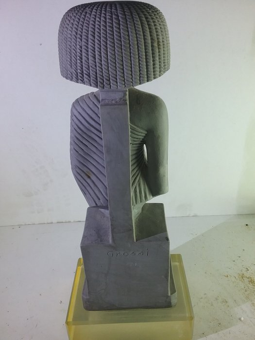 Egyptische graf beeld, op voet, getekend artist "grossi"