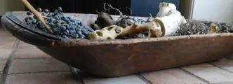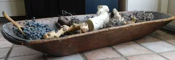 Een grote trog van ca. 16 cm hoog x 105 cm lang en 35 cm breed. Vroeger gebruikt om bij de bakker het deeg te kneden.