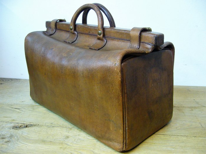 Deze grote tas is waarschijnlijk van een veearts geweest - zoals soms op oude Engelse prenten te zien is - maar is ook zeer geschikt als hippe reistas.