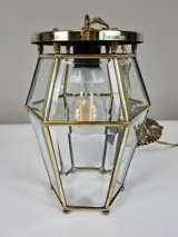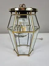 Materiaal: messing / facet geslepen glas / porseleinen fitting.