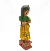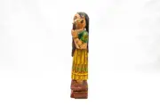 Oude antieke originele houten hand gesneden geschilderd India vrouw beeldje standbeeld