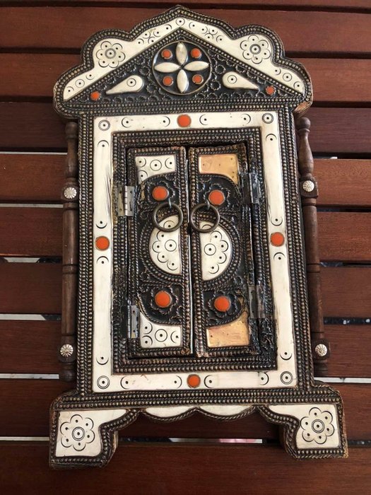 Handgemaakte wandspiegel metaal,koper,Came Bone Marokkaans decor met hangende deuren