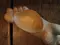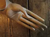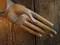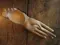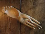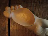 Een uniek hout uitgesneden schaaltje / vide poche met een hand en voet.
